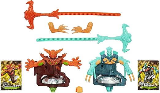 Hasbro Beyblade Shogun Faceoff Beywarriors: Ogni confezione contiene 2 combattenti shogun (con testa, busto e braccia personalizzabili e suggerimento di combattimento), 2 dispositivi di lancio Ripcord, una seria aggiuntiva di braccia dotate di armi, un suggerimento tattico e 2 carte da collezione. Ideale dai 7 anni