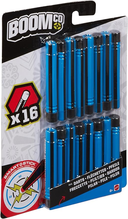 Divertiti con BOOMco! La punta di ogni dardo è realizzata in materiale Smart Stick BOOMco. Aderisce a tutti i bersagli Smart Stick e agli scudi blaster. Disponibile in tantissimi colori diversi, così puoi distinguerlo facilmente sul campo di battaglia (venduto separatamente). 16 dardi Smart Stick per confezione. Prodotto importato. Fattura non disponibile.