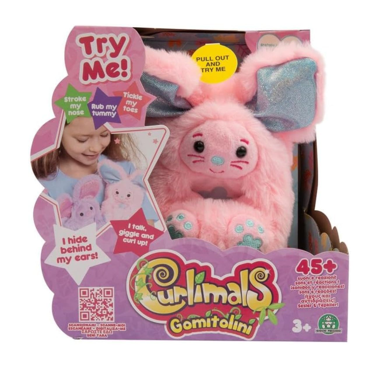 Nuovi cuccioli entrano nella famiglia dei Curlimals con le loro grandi orecchie questi coniglietti sono veramente adorabili Hanno la capacità di arrotolarsi avvolgendo tutto il corpo con le loro grandi orecchie Offrono un esperienza coinvolgente grazie ai 3 punti di interazione e migliorano l esperienza sensoriale grazie ai nuovi tessuti morbidi