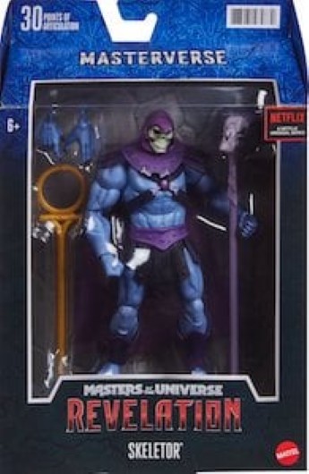 Il temibile Skeletor è qui. Imponente e terrificante. Infatti, questa action figure articolata lo raffigura così come appare nella serie televisiva Masters of the Universe: Breaking Dawn. La nemesi di He-Man ha il volto scheletrico e il corpo blu. L'action figure è completamente articolata e include diversi accessori: due paia di mani e il suo famoso bastone con testa di ariete, tra gli altri.