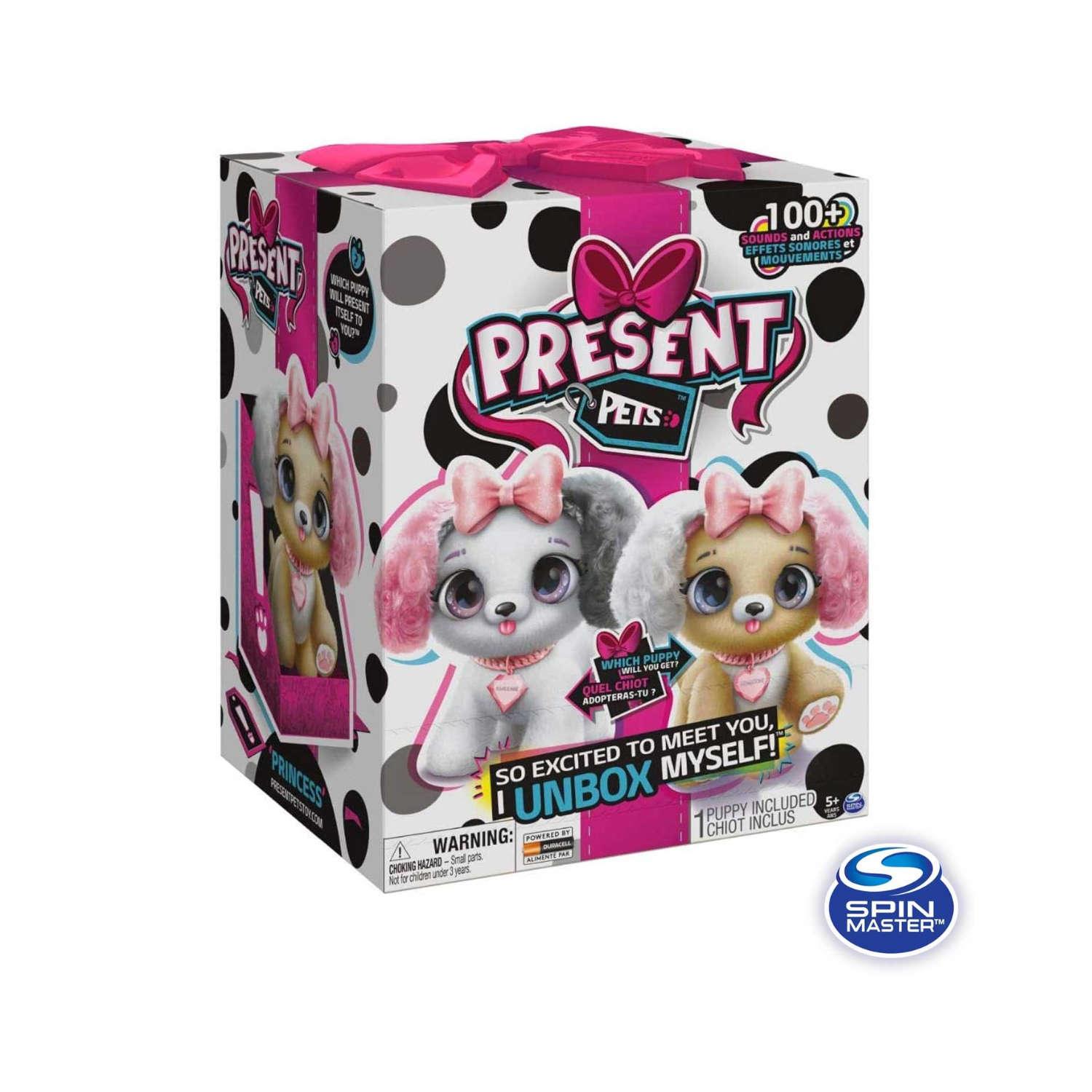 Present Pets non vede l'ora di essere adottato soltanto dopo aver tirato l'etichetta sulla confezione regalo si potrà scoprire quale cucciolo uscirà dalla scatola, chi uscirà dalla confezione regalo? Princess o Kweenie, ogni cucciolo Fancy ha occhi espressivi, morbida pelliccia e dettagli in oro rosa su zampe, orecchie, colletto e fiocco, dà baci quando viene coccolata, agita la coda e muove le zampe quando vuole giocare, risponde agli stimoli esterni e alla voce della bambina