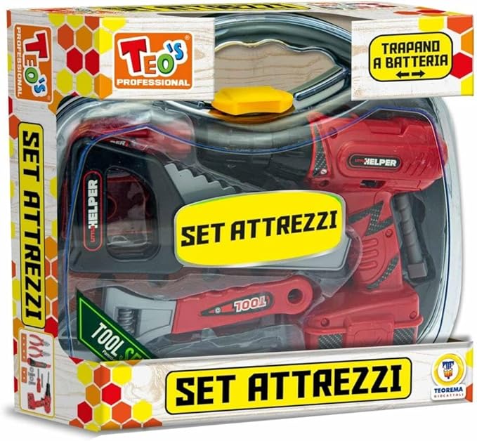 Teorema - Valigetta Attrezzi Giocattolo per Bambini, 12 Pezzi, con Trapano a Batteria, Design Realistico