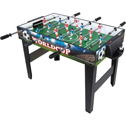 CALCETTO BALILLA WORLDCUP CON GAMBE H. 62CM Descrizione Calciobalilla in legno per bambini e adulti, con 2 palline da calcetto, misure: 96 x 68 x 62 cm codice articolo: 67358 il prodotto contiene 1 calciobalilla e 2 palline da calcetto. All interno del campo ci sono 14 giocatori divisi in 2 squadre di colore rosso e blu. Realizzato in legno, materiale resistente durante il gioco e sicuro per la persona. Il calciobalilla può essere giocato da 2 o più persone, in questo modo c è la possibilità di interagire con altre persone. Durante la partita chi gioca stimola l adrenalina e sviluppa la coordinazione e la capacità di risposta. Scarica lo stress e approfondisce il rapporto con gli amici e la famiglia. Dimensioni: 68 x 96 x 62 cm. Avviso di sicurezza Prima di dare il gioco al bambino assicurarsi che tutti i dispositivi di sicurezza, compreso viti o bulloni, siano fissati correttamente. Informazioni su questo articolo COMPONENTI: il prodotto contiene 1 Calciobalilla e 2 Palline da Calcetto; all interno del campo ci sono 14 giocatori divisi in 2 squadre di colore rosso e blu MATERIALE: Realizzato in Legno, materiale resistente durante il gioco e sicuro per la persona GIOCO di SOCIETA : il Calciobalilla può essere giocato da 2 o più persone, in questo modo c è la possibilità di interagire con altre persone; durante la partita chi gioca stimola l adrenalina e sviluppa la coordinazione e la capacità di risposta; scarica lo stress e approfondisce il rapporto con gli amici e la famiglia